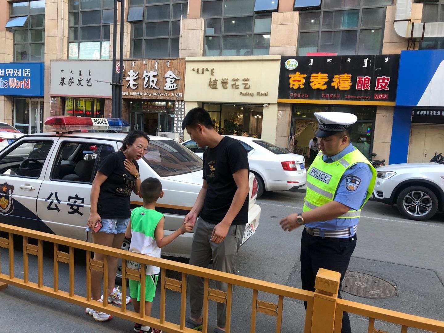 7月14日19時許,呼和浩特市萬達一巷,呼和浩特市公安局交警支隊賽罕大隊八中隊的民警正在這里巡邏。突然一名6歲左右的小男孩跑到執(zhí)勤交警律國偉面前:哭著說找不到父母,想請警察叔叔幫助尋找他的媽媽。
