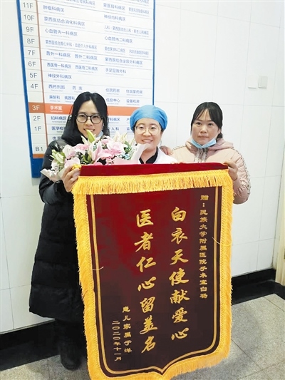 11月27日,當(dāng)孩子已經(jīng)好轉(zhuǎn)出院,王欣影沒有忘記那一夜遇到的好心人,她再一次撥通白楊的電話,此時,她才得知白楊就是附屬醫(yī)院手術(shù)室的一名護(hù)士。她將一面寫有“白衣天使獻(xiàn)愛心醫(yī)者仁心留美名”的錦旗送到了白楊的手中,她說:女兒又多了一位媽媽。白楊也向記者講起了那晚的經(jīng)歷,她說:“其實(shí),那晚我是去接我丈夫的,由于暴雪,丈夫被困在了米家科技園附近,我開車去接他,在回來的路上,看到有車輛遇險,心想,這樣惡劣的天氣,遇到誰有困難就應(yīng)該幫一把,當(dāng)時,我們也沒有多想,我也是做母親的,看到夫妻倆那么焦急,我只想把孩子快點(diǎn)送到醫(yī)院,好在有驚無險,孩子平安無事?!焙髞?,記者還了解到,當(dāng)把孩子送到醫(yī)院后,白楊已渾身濕透,待孩子已經(jīng)搶救上,安頓好王欣影后,已經(jīng)是凌晨5點(diǎn),天也蒙蒙亮了,白楊沒有回家,一夜未眠的她,留在了工作崗位上。