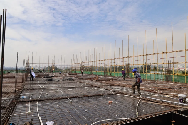 “目前,項目正在進行基礎(chǔ)設(shè)施施工,辦公樓已完成1層封頂,1號車間正在進行主體結(jié)構(gòu)的鋼管架的搭設(shè)和模板制作,外網(wǎng)工程和2號、3號車間基礎(chǔ)施工也在順利推進。”項目施工單位負責人王秀山告訴記者,該項目計劃今年8月底完成辦公樓、綜合服務(wù)樓主體施工,9月中旬完成3個車間主體施工。
