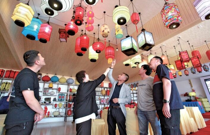 “我們有手工編織的宮燈、紗燈、吊燈等180多種款式的燈籠供消費(fèi)者選擇?!苯眨灾螀^(qū)級非物質(zhì)文化遺產(chǎn)項(xiàng)目——燈籠編織技藝傳承人杜學(xué)龍給游客介紹自己的產(chǎn)品。