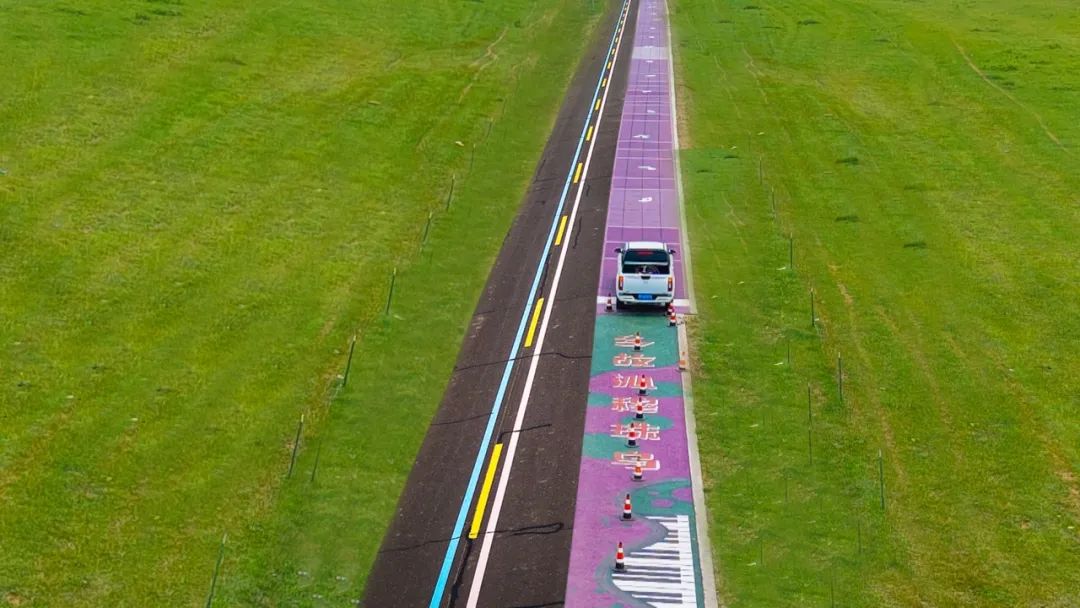 此外,西烏旗草原“99號公路”新增了14.292公里騎行路,鋪就以“烏珠穆沁”音譯內(nèi)涵(摘葡萄的人)為靈感的葡萄紫路面,是騎行愛好者與游客打卡體驗草原風(fēng)情的絕佳之地。草原“99號公路”起點的心形停車服務(wù)區(qū)預(yù)計2025年7月投用,發(fā)光Logo項目同步啟動。