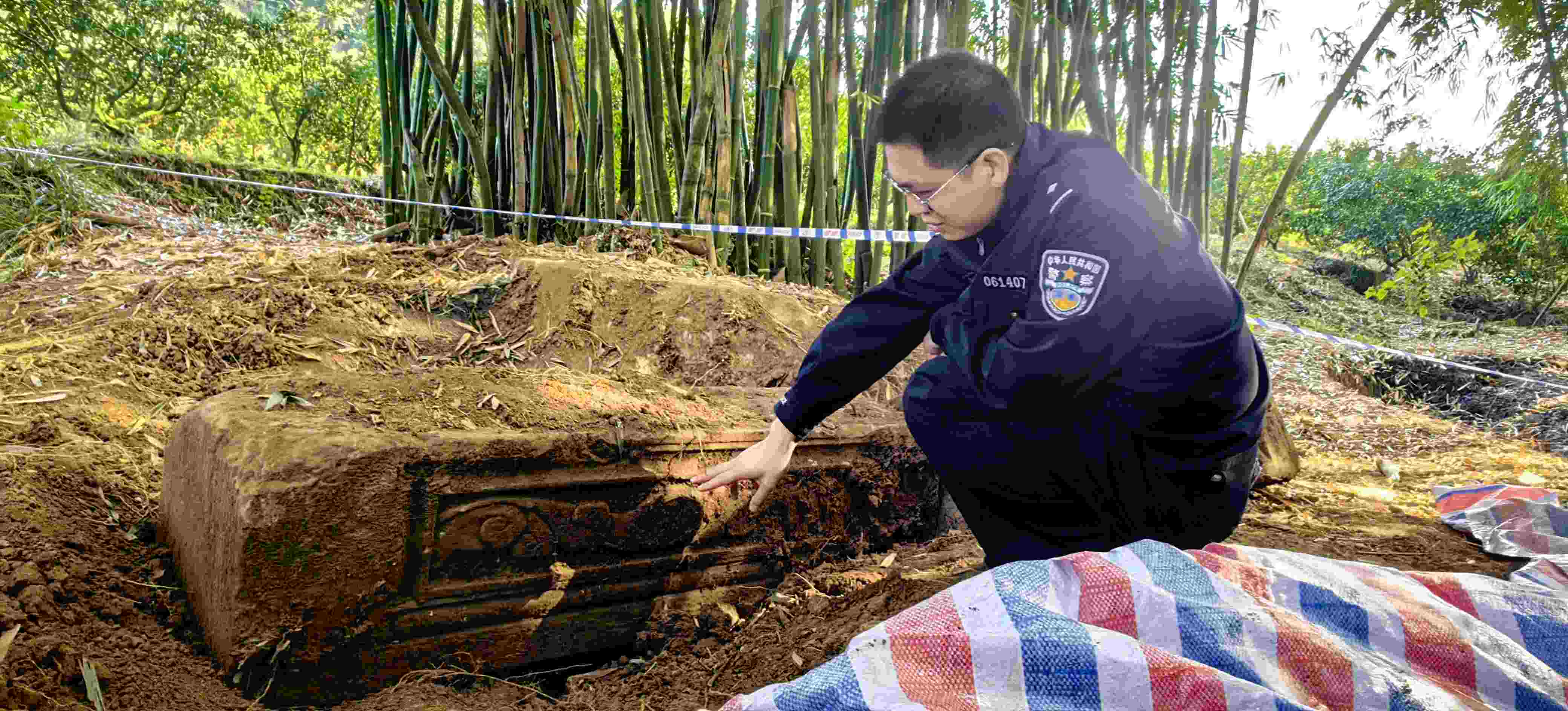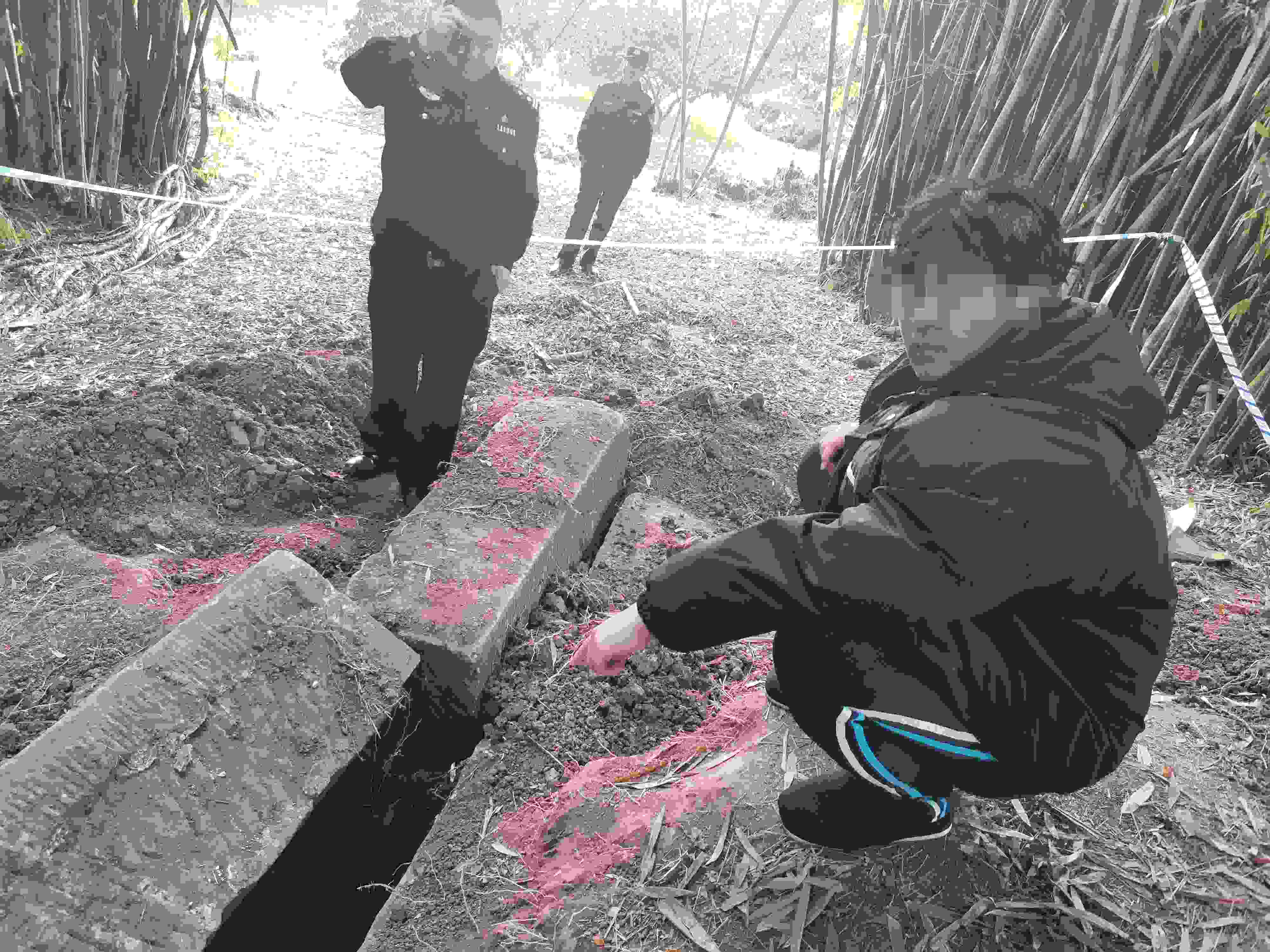 韓某家族的這座祖墳地處一片竹林中,離最近的房屋直線距離不足20米。為此,他趕到現(xiàn)場發(fā)現(xiàn),墓室上的土有多處被挖痕跡,但墓門上的石頭還沒被打開?!斑@個地方是條大路,白天也沒人看到有人來過。”韓某懷疑有人盯上了他家的祖墳,想要盜墓,并判斷那些人還會再來。