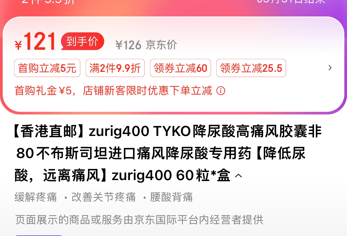 zurig400產(chǎn)品標題宣稱“痛風特效藥”