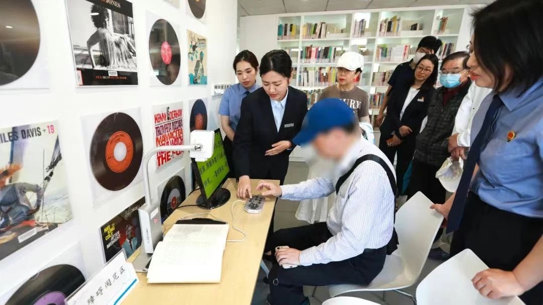 經(jīng)整改,圖書館各在一樓和三樓設(shè)有無障礙閱覽區(qū),增配大字版圖書和手指點(diǎn)讀發(fā)聲書,配置盲人專用電腦助視器、盲文點(diǎn)字顯示器、盲文有聲讀書機(jī)和放大鏡。打造有聲閱讀文化體驗(yàn)陣地“數(shù)智圖書館”,視障讀者只需使用數(shù)智耳機(jī)觸碰感應(yīng)相應(yīng)書卡和書籍,就能輕松接觸到千本好書的精華內(nèi)容,方便快捷地享受與普通人同等的閱讀權(quán)益。圖書館還設(shè)有無障礙通道、無障礙衛(wèi)生間、無障礙電梯,為視障、腿部殘疾等特殊人群提供安全便利全方位的出入保障。