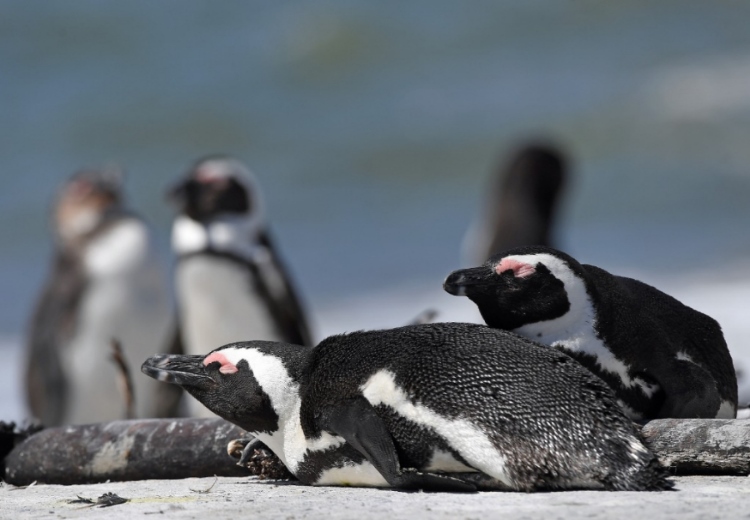 這是2021年9月29日在南非西蒙斯敦的博爾德斯海灘拍攝的非洲企鵝。新華社記者陳誠攝