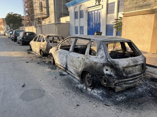 這是2022年8月27日在利比亞首都的黎波里拍攝的損毀的汽車。新華社發(fā)(哈姆扎·圖爾基亞攝)