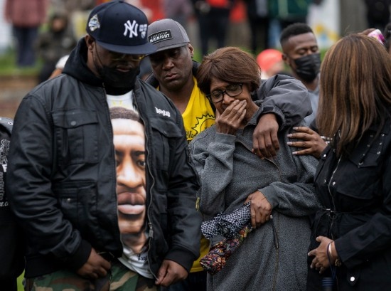 2022年5月25日,在美國明尼蘇達(dá)州明尼阿波利斯市,弗洛伊德的家人參加哀悼活動,紀(jì)念弗洛伊德遇害兩周年。新華社發(fā)(本·布魯爾攝)
