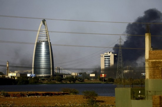 4月15日,蘇丹首都喀土穆冒出濃煙。新華社發(fā)(穆罕默德·海德爾攝)