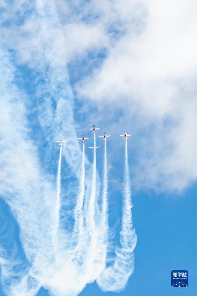 5月23日,在馬來西亞蘭卡威舉行的第16屆蘭卡威國際海事和航空展上,飛行表演隊進行特技飛行表演。