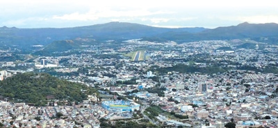 從機場乘車約一個半小時,便來到洪都拉斯首都特古西加爾巴。這座建立于16世紀(jì)的城市位于巨大的山谷盆地中,周圍群山環(huán)抱,層巒疊嶂。城內(nèi)地勢起伏,道路蜿蜒,商場、民居、寫字樓等各式建筑高低不一,錯落有致,從城市中心向外鋪展開去,一眼望不到頭。不少民居依山而建,從山中綠植中露出一角,讓人不時眼前一亮。