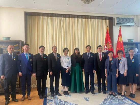 6月6日,塞爾維亞駐華大使館舉行塞爾維亞國家勛章頒授儀式,向中國赴塞爾維亞抗疫醫(yī)療專家組成員頒發(fā)“金質(zhì)功勛獎(jiǎng)?wù)隆保员碚盟麄優(yōu)橹С秩麪柧S亞抗擊新冠疫情所作的貢獻(xiàn)。