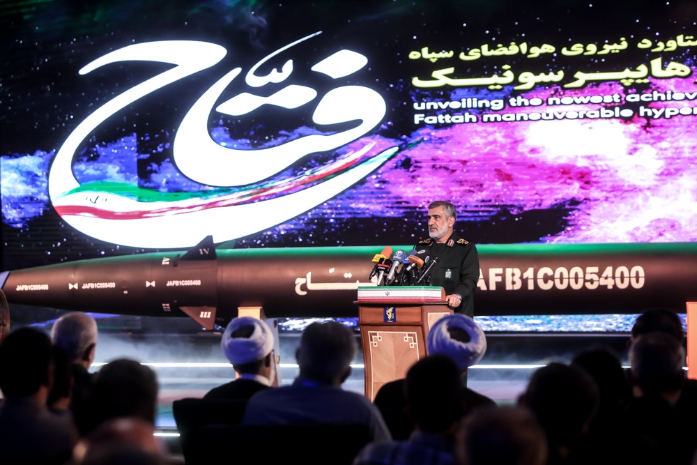 當(dāng)日,伊朗公開展示首型國產(chǎn)高超音速導(dǎo)彈“征服者”,說這種新型彈道導(dǎo)彈最大速度可以達(dá)到15馬赫、即15倍音速。伊朗總統(tǒng)易卜拉欣·萊希、伊朗伊斯蘭革命衛(wèi)隊(duì)司令侯賽因·薩拉米參加了揭幕儀式。伊朗伊斯蘭革命衛(wèi)隊(duì)航空航天部隊(duì)司令阿米爾-阿里·哈吉扎德在儀式上介紹,“征服者”導(dǎo)彈最大射程為1400公里,擊中目標(biāo)前速度可達(dá)13至15馬赫。 視覺中國