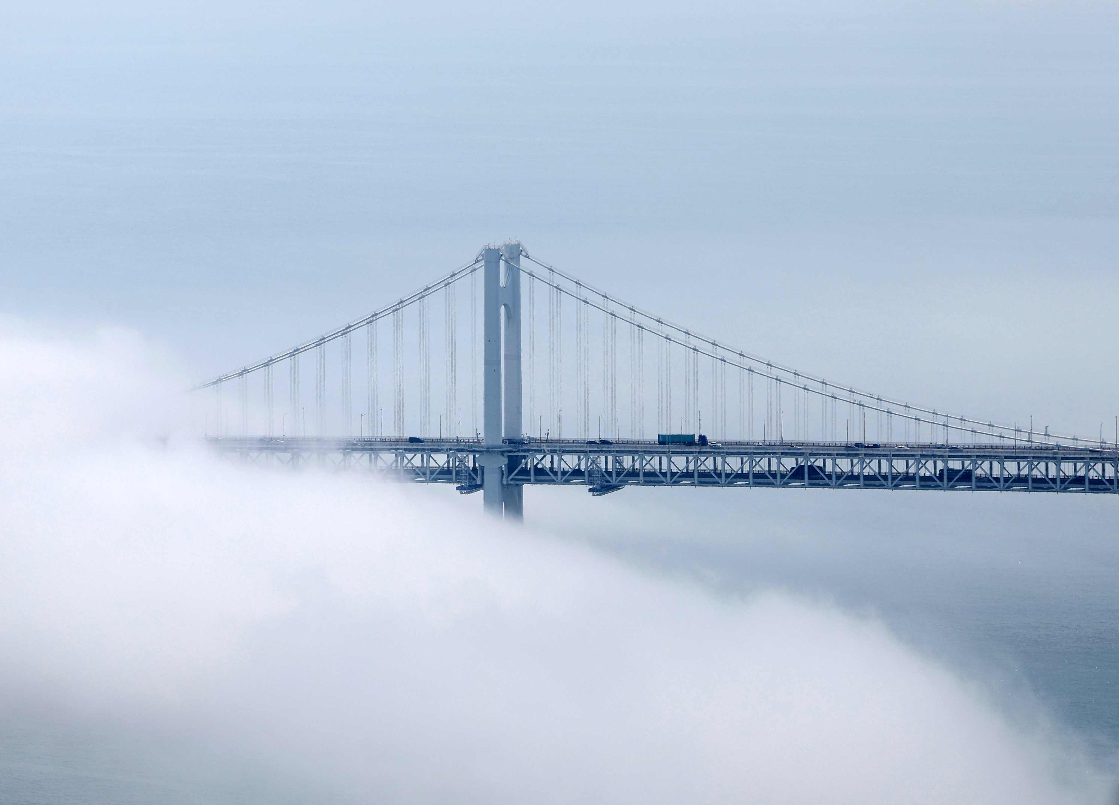 當(dāng)?shù)貢r(shí)間2023年6月12日,韓國釜山,廣安大橋一帶海霧彌漫,蔚為壯觀。 視覺中國