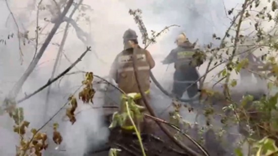 視頻截圖:火災(zāi)救援畫(huà)面(哈薩克斯坦緊急情況部提供)