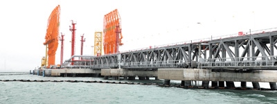 中遠(yuǎn)海運(yùn)港口阿聯(lián)酋阿布扎比碼頭采用岸橋預(yù)留自動(dòng)化和堆場(chǎng)自動(dòng)化作業(yè)模式,可作業(yè)超2萬(wàn)標(biāo)準(zhǔn)箱大型船舶,年設(shè)計(jì)能力250萬(wàn)標(biāo)準(zhǔn)箱。本報(bào)中東中心分社 納達(dá)爾·達(dá)烏德攝