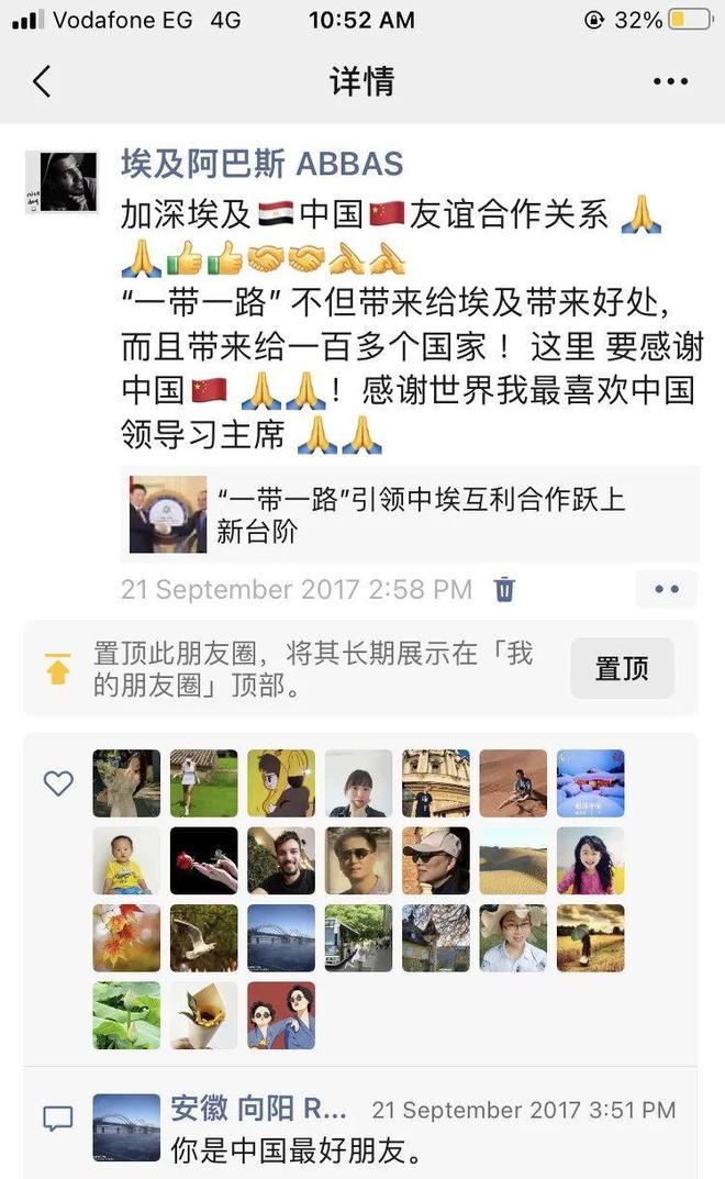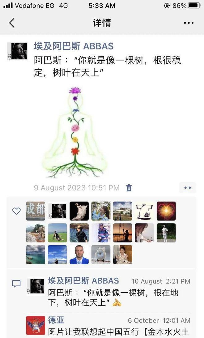 “你就是像一棵樹,根很穩(wěn)定,樹葉在天上?!边@是阿巴斯微信朋友圈里的一句話,也是他生活和工作的寫照。那深入泥土的遒勁的“根”,是他對中文和中國文化的不斷深入學(xué)習(xí),是不斷發(fā)展的中埃友誼,是不斷走深走實的共建“一帶一路”倡議;那姿態(tài)昂揚(yáng)、伸向天空的輕盈的“葉”,是他由“小我”走向“大我”穩(wěn)步實現(xiàn)的夢想,是他對更美好明天的熱切期待。
