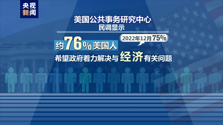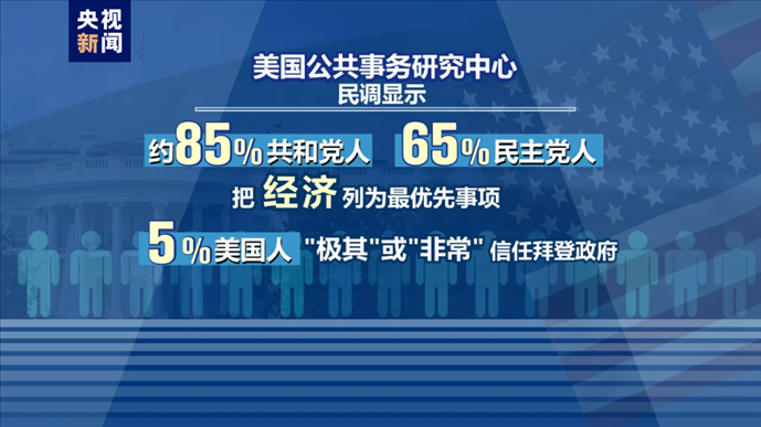 民調(diào)顯示,約76%的美國人希望政府著力解決與經(jīng)濟(jì)有關(guān)的問題,與2022年12月75%的占比相差無幾。約85%的共和黨人和65%的民主黨人把經(jīng)濟(jì)列為最優(yōu)先事項。民調(diào)還顯示,僅有5%的美國人“極其”或“非常”信任拜登政府。