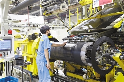 通用橡膠(泰國)有限公司年產各類輪胎共計730萬套。圖為泰籍員工在汽車輪胎生產線上工作。本報記者 孫廣勇攝