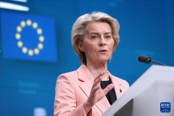3月21日,在比利時布魯塞爾,歐盟委員會主席馮德萊恩在歐盟峰會期間出席新聞發(fā)布會。新華社記者 趙丁喆 攝