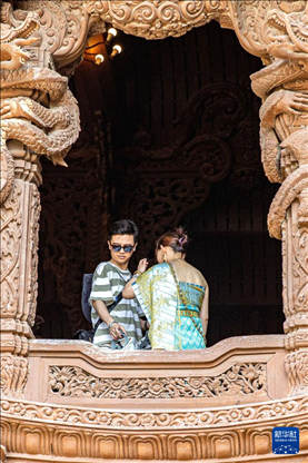 3月29日,游客在泰國(guó)芭堤雅真理圣殿游覽。新華社記者 王騰 攝