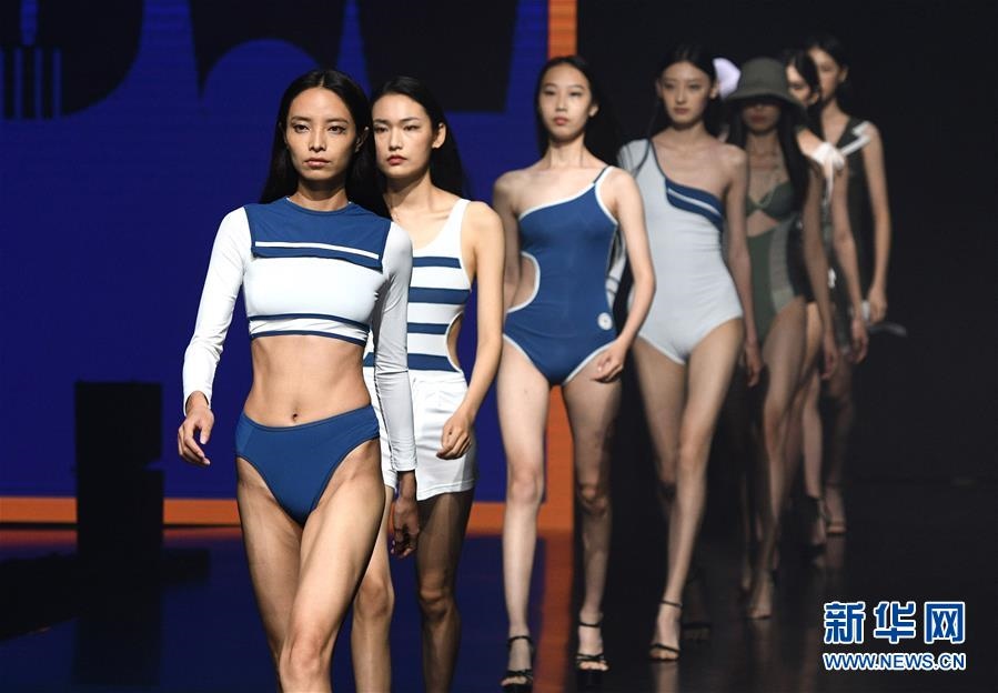 9月1日,模特在“泳享青春不負未來”第五屆互聯(lián)網時尚設計大賽決賽上展示服裝。當晚,以“新銳力量——原力覺醒”為主題的東方時尚季·第20屆中國(青島)國際時裝周落下帷幕。新華社記者李紫恒攝