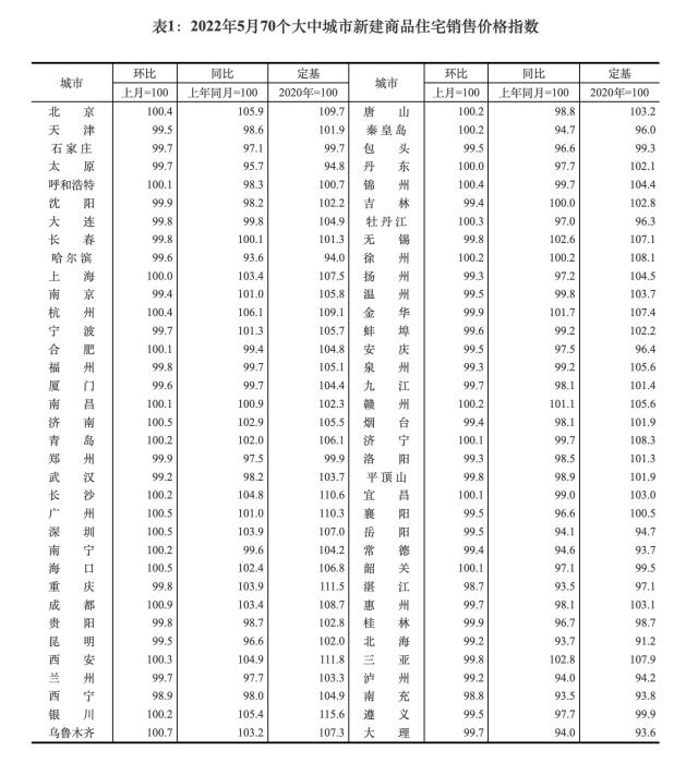 中新財(cái)經(jīng)6月16日電6月16日,國(guó)家統(tǒng)計(jì)局公布的數(shù)據(jù)顯示,2022年5月份,70個(gè)大中城市商品住宅銷售價(jià)格環(huán)比總體延續(xù)降勢(shì),但降勢(shì)趨緩,新建商品住宅環(huán)比下降城市個(gè)數(shù)減少;一、二、三線城市商品住宅銷售價(jià)格同比漲幅均有回落或降幅擴(kuò)大,同比下降城市個(gè)數(shù)增加。
