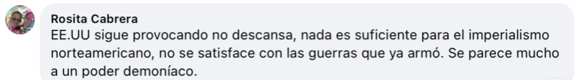 烏拉圭網(wǎng)友Rosita Cabrera:“美國一直在挑釁,不眠不休,對美帝國主義來說什么都不夠,它不滿足于已經(jīng)發(fā)動的那些戰(zhàn)爭,它就是邪惡勢力?!?/p>