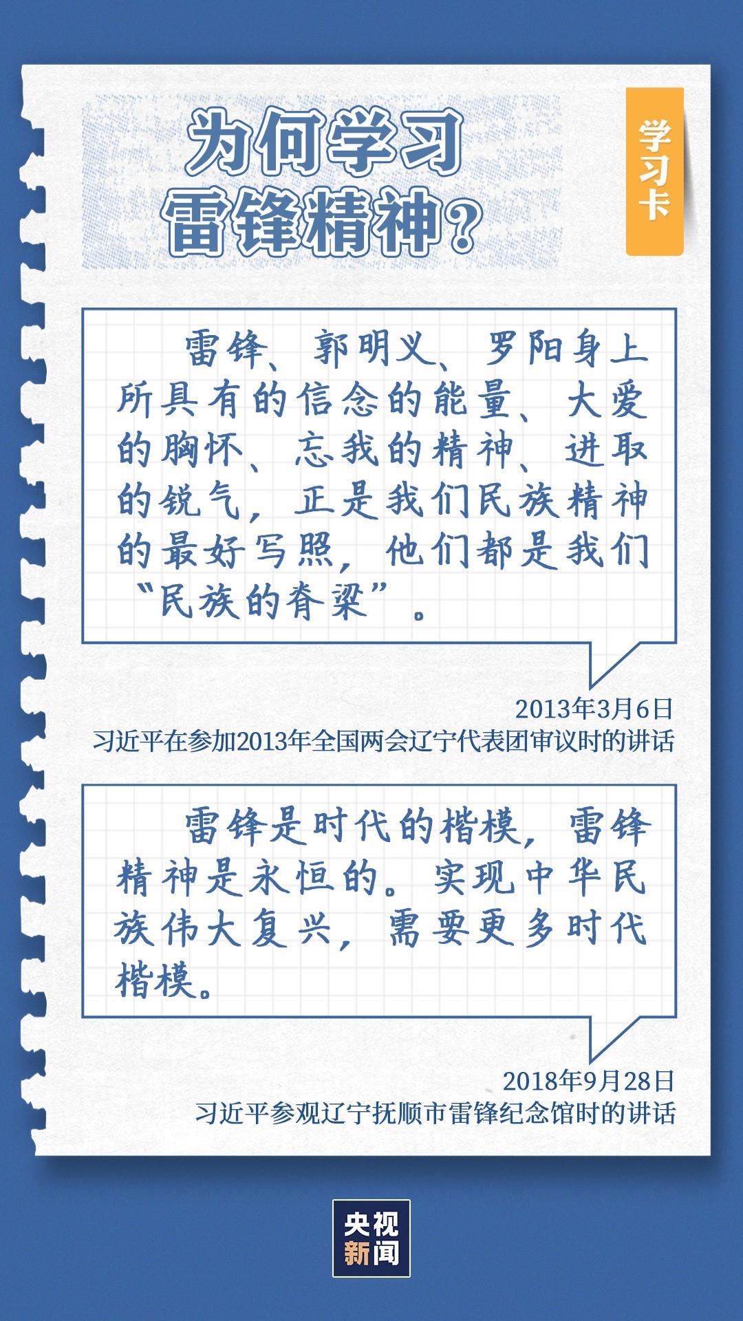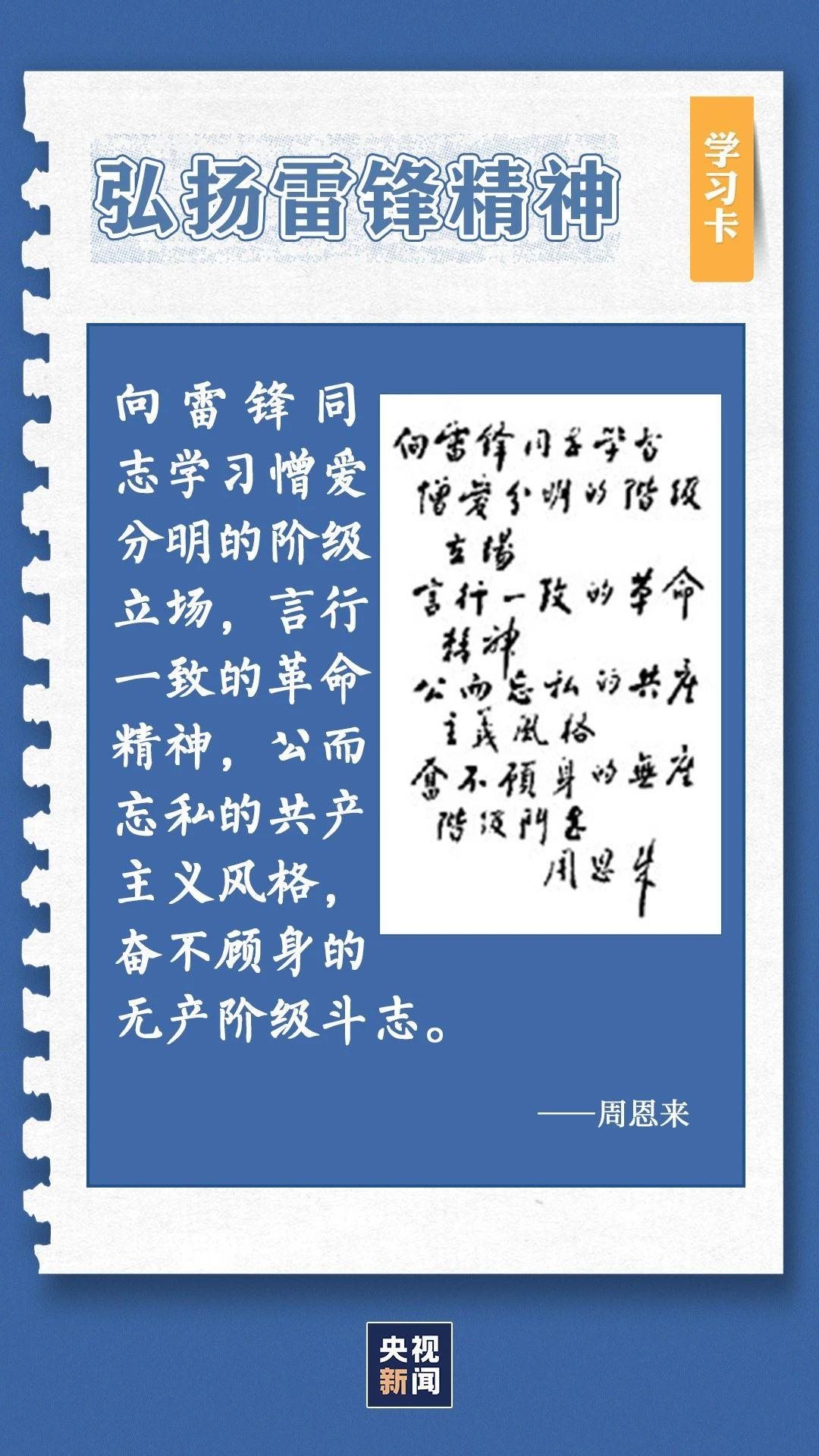 中共中央總書記、國家主席、中央軍委主席習(xí)近平近日作出重要指示指出,今年是毛澤東等老一輩革命家為雷鋒同志題詞60周年。60年來,學(xué)雷鋒活動在全國持續(xù)深入開展,雷鋒的名字家喻戶曉,雷鋒的事跡深入人心,雷鋒精神滋養(yǎng)著一代代中華兒女的心靈。實(shí)踐證明,無論時代如何變遷,雷鋒精神永不過時。在新時代新征程上,如何弘揚(yáng)雷鋒精神?點(diǎn)擊學(xué)習(xí)卡↓