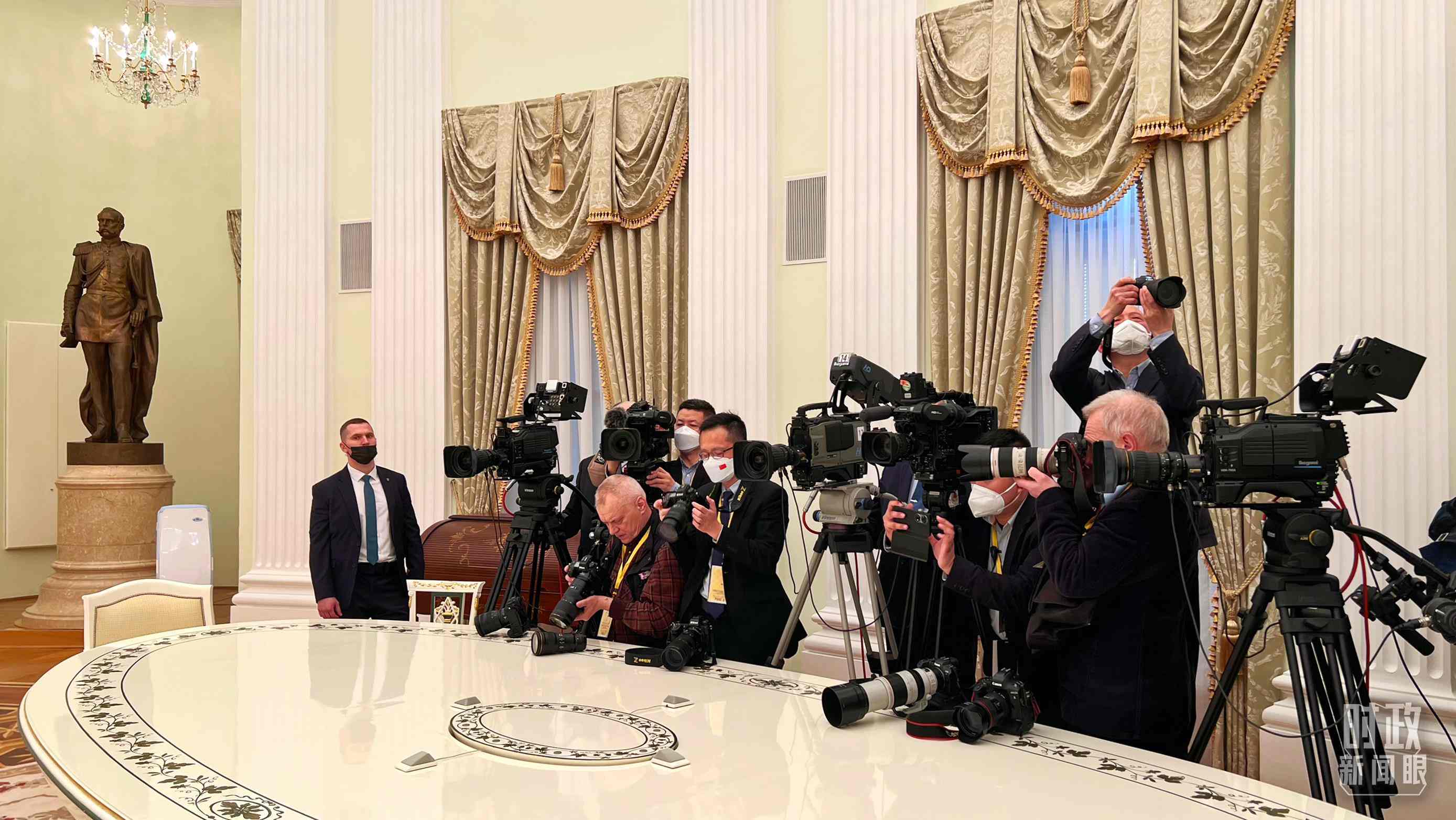 △3月20日下午,中外記者前往克里姆林宮拍攝中俄兩國元首會見。(總臺央視記者程鋮拍攝)