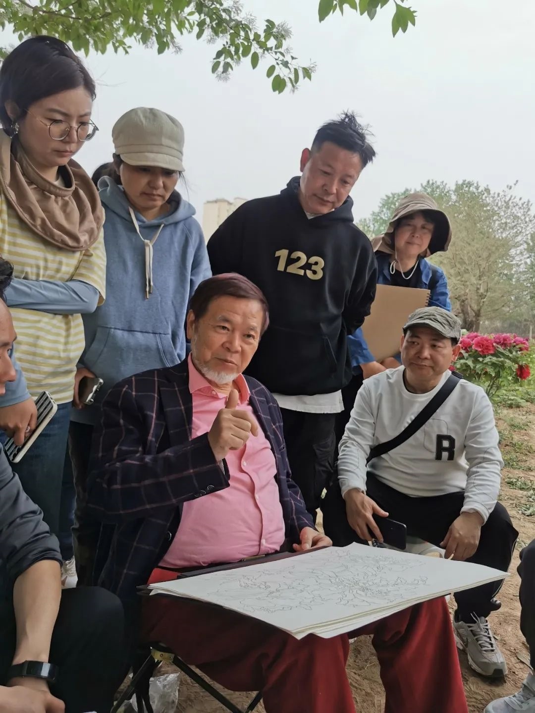 自1975年29歲的何水法先生以赤子之心,首次只身赴菏澤,48年來,為畫牡丹,寫其牡丹之真情、寫其牡丹之風(fēng)骨,寫其國花繁榮富強之真諦。用何水法先生世紀之初所言:“寫生是畫家與生活的對話”。藝術(shù)家也要不斷地站在時代的前列,站在歷史的高位,不斷思索,不斷地刷新繪畫語言。要緊隨時代發(fā)展的需要,不斷突破新題材、突破新意境。因此他今年又親率眾學(xué)生第十五次來菏澤深入考察,發(fā)揮示范引領(lǐng)作用,體驗生活、開闊思維,為謳歌人民、謳歌新時代,進行新的藝術(shù)創(chuàng)造。