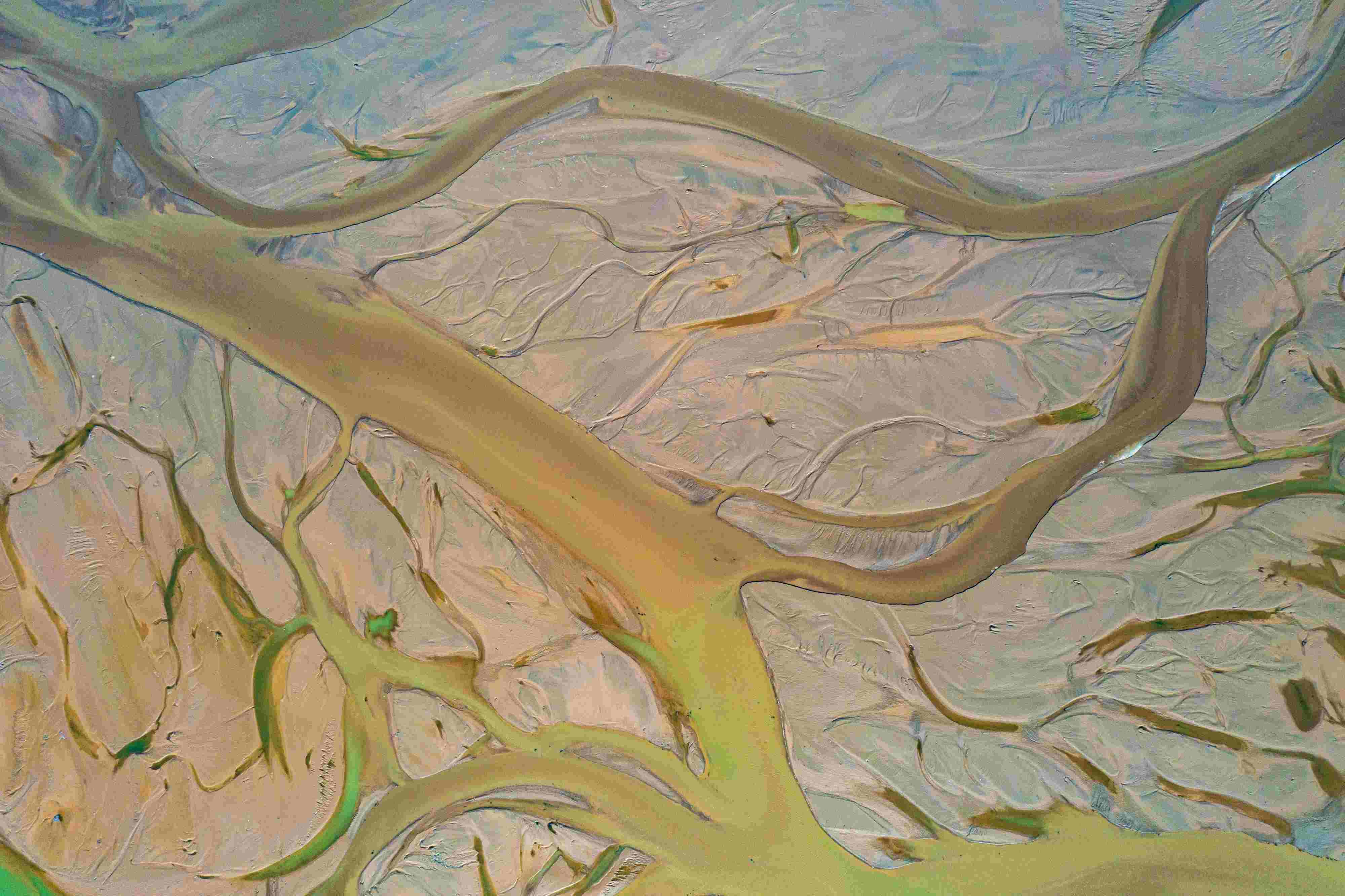 4月16日,山西運(yùn)城,由于黃河上游降雨和庫區(qū)泄水水量增加,黃河永濟(jì)段河床在水流沖刷下河汊縱橫,高空俯瞰宛若“大地血脈”。 視覺中國(guó)
