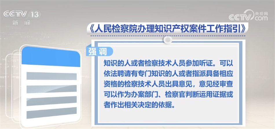 同時(shí),《工作指引》強(qiáng)調(diào),遇有涉及國(guó)家秘密、商業(yè)秘密、個(gè)人隱私或者其他需要保密的情形,應(yīng)當(dāng)依利害關(guān)系人書(shū)面申請(qǐng),采取組織訴訟參與人簽署保密承諾書(shū)、對(duì)秘密信息進(jìn)行技術(shù)處理等必要的保密措施。針對(duì)知識(shí)產(chǎn)權(quán)案件技術(shù)性強(qiáng)的特點(diǎn),根據(jù)案件需要,可以邀請(qǐng)有專門(mén)知識(shí)的人或者檢察技術(shù)人員參加聽(tīng)證,可以依法聘請(qǐng)有專門(mén)知識(shí)的人或者指派具備相應(yīng)資格的檢察技術(shù)人員出具意見(jiàn)。意見(jiàn)經(jīng)審查可以作為辦案部門(mén)、檢察官判斷運(yùn)用證據(jù)或者作出相關(guān)決定的依據(jù)。