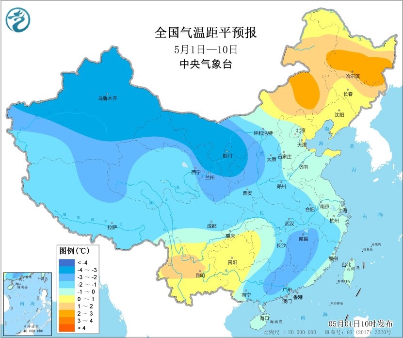 未來10天,除內(nèi)蒙古中東部、東北地區(qū)及云貴高原平均氣溫較常年同期偏高1℃左右外,全國其余大部分地區(qū)平均氣溫較常年同期偏低1~2℃,其中新疆、甘肅、內(nèi)蒙古西部等地的部分地區(qū)偏低3℃以上。