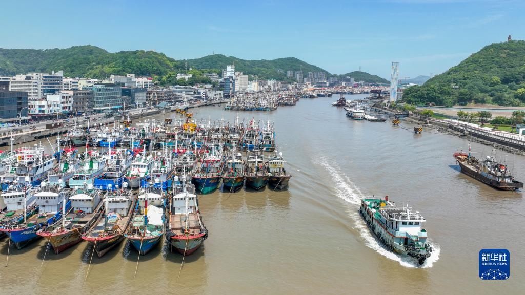 4月30日,在浙江省舟山市普陀區(qū)沈家門漁港,漁船歸港準(zhǔn)備休漁(無人機(jī)照片)。