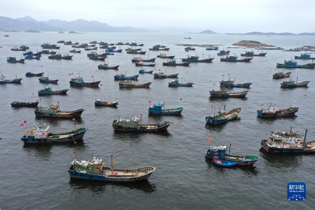 4月30日,準(zhǔn)備休漁的漁船停泊在福建省福州市連江縣苔菉鎮(zhèn)北茭村漁港(無人機(jī)照片)。