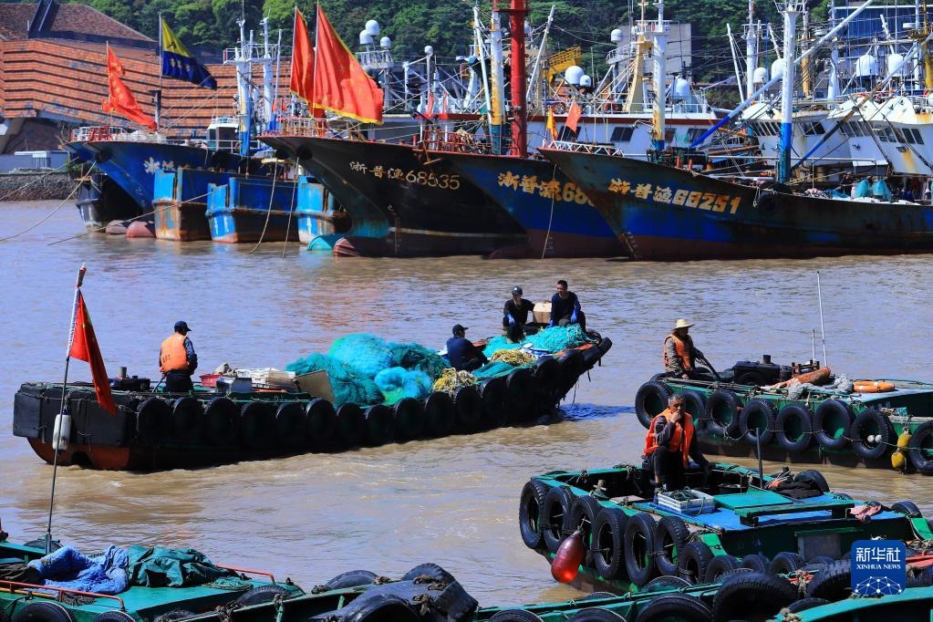 4月30日在浙江省舟山市普陀區(qū)沈家門漁港拍攝的回港停泊的漁船。 新華社發(fā)(邢守秒攝)