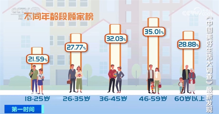 大調(diào)查發(fā)現(xiàn),46—59歲的中年人休閑時(shí)間陪伴家人的比例最高,其次是36—45歲人群。這兩個(gè)年齡段的人群,大都上有老下有小,家庭責(zé)任最大,一家人團(tuán)團(tuán)圓圓才是最美好的生活。