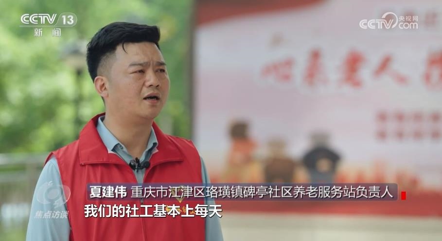 重慶市江津區(qū)珞璜鎮(zhèn)碑亭社區(qū)養(yǎng)老服務(wù)站負(fù)責(zé)人夏建偉:“一天下來(lái),滿滿當(dāng)當(dāng)?shù)模覀兊纳绻せ旧厦刻於汲^(guò)了兩萬(wàn)三千步的樣子。雖然說(shuō)很累,但是每一個(gè)社工都很愉快,都覺(jué)得在這個(gè)過(guò)程當(dāng)中找到了快樂(lè),也找到了成就感。”
