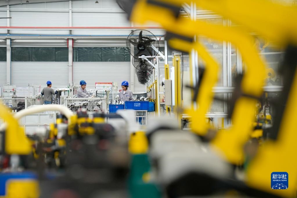 5月4日,在浙江省湖州市長興經(jīng)濟技術開發(fā)區(qū)一家汽車部件有限公司,工人生產(chǎn)新能源汽車配件。