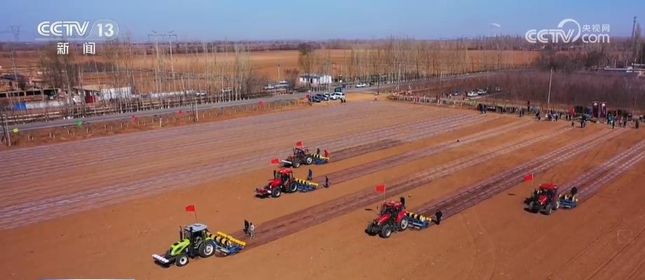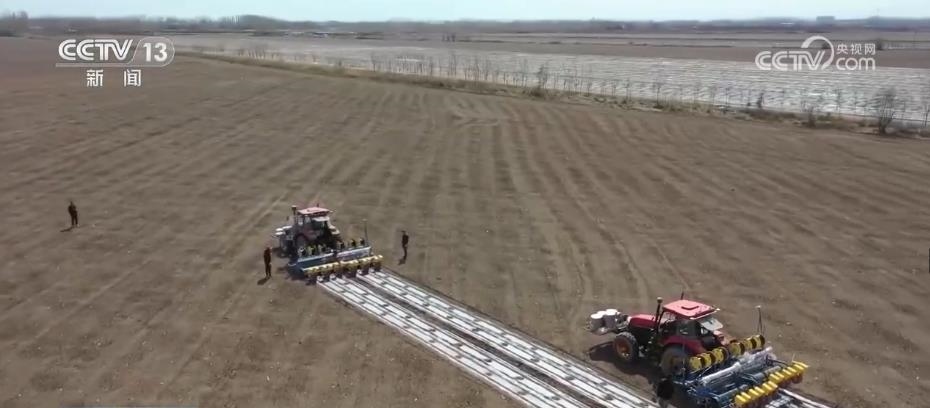 眼下,新疆瑪納斯縣65萬畝棉花全面開播。在文家莊村的棉田里,五臺裝有北斗導航系統(tǒng)的大馬力拖拉機,正按照預先設定的播種線路,進行精量播種。
