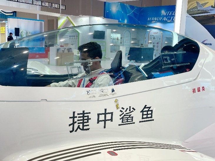 采訪團成員在展會體驗“鯊魚飛機”
