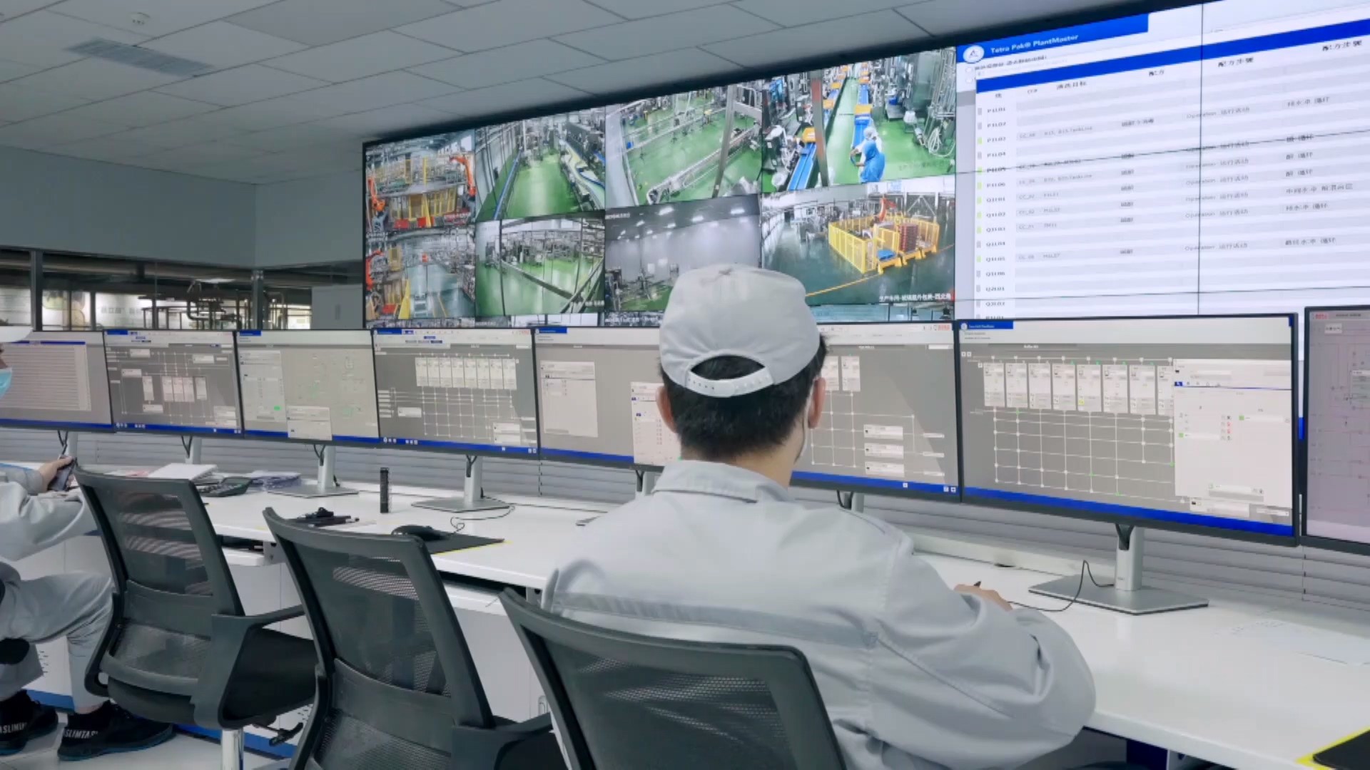 總臺(tái)記者 張智:智能生活,無(wú)處不在,哪怕只是一袋小小的牛奶。在我所在的這間智能工廠,19條智能生產(chǎn)線正在高速運(yùn)轉(zhuǎn),百余種乳制品被生產(chǎn)出來(lái),送往千家萬(wàn)戶。從鮮奶、各種原輔料,到成為一箱箱包裝完備的牛奶,每一道生產(chǎn)流程都被數(shù)字化,整個(gè)過(guò)程不超過(guò)24小時(shí)。通過(guò)設(shè)備上的傳感器,溫度、壓力、流量等信息傳輸?shù)街腔鄞竽X。工人們?cè)诳刂浦行木涂蓪?shí)現(xiàn)全流程監(jiān)管。智能化、數(shù)字化的生產(chǎn)方式,讓乳業(yè)制造向“智造”飛躍。