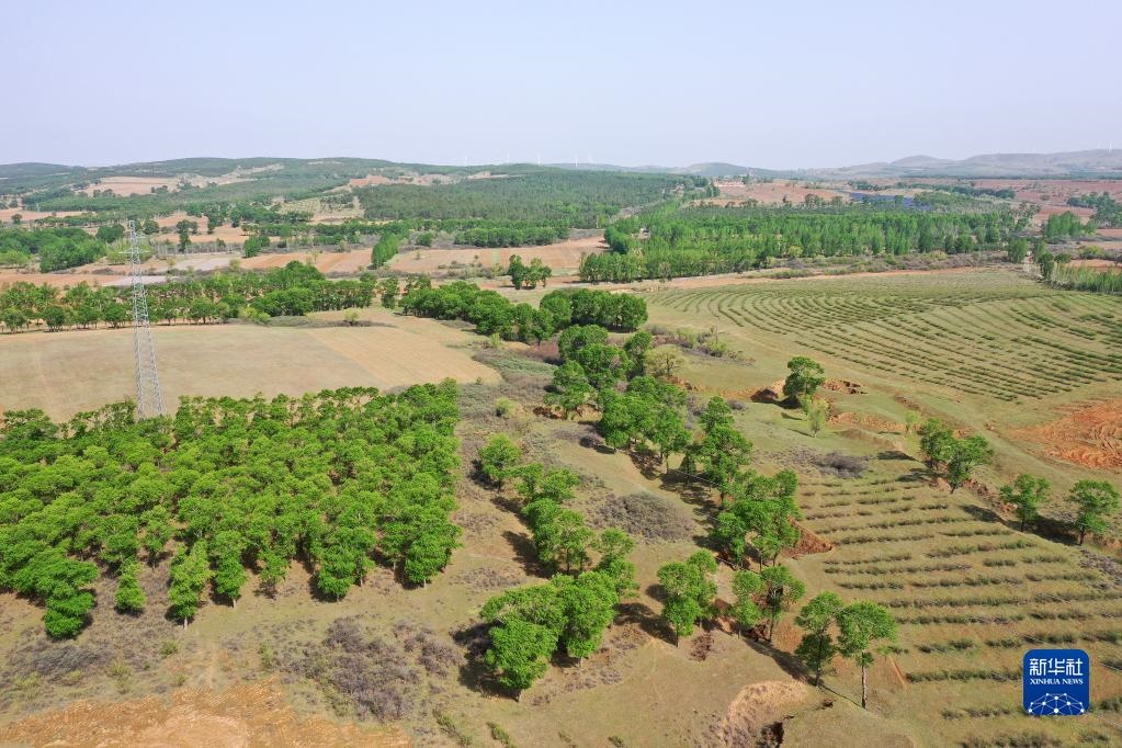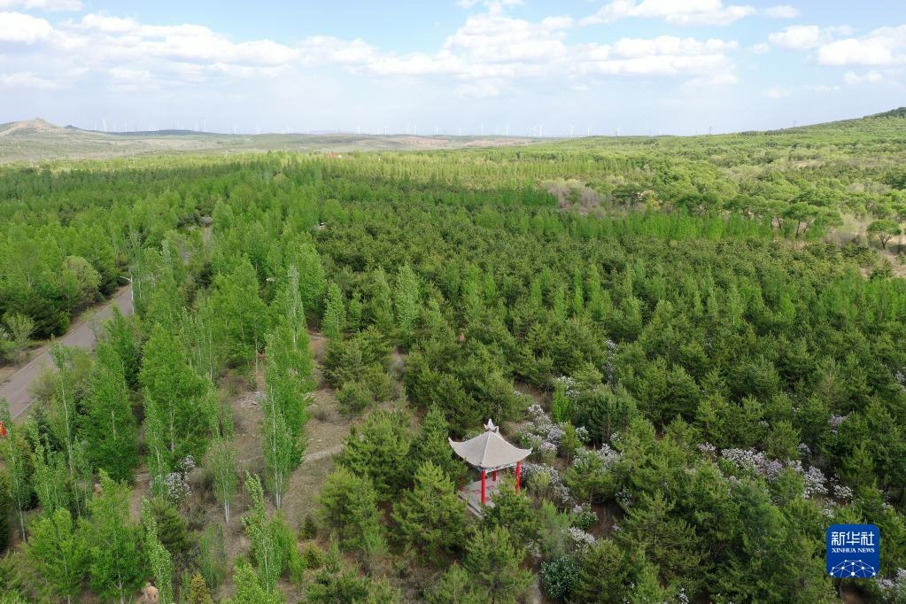 山西省右玉縣南山森林公園一角(5月18日攝,無(wú)人機(jī)照片)。
