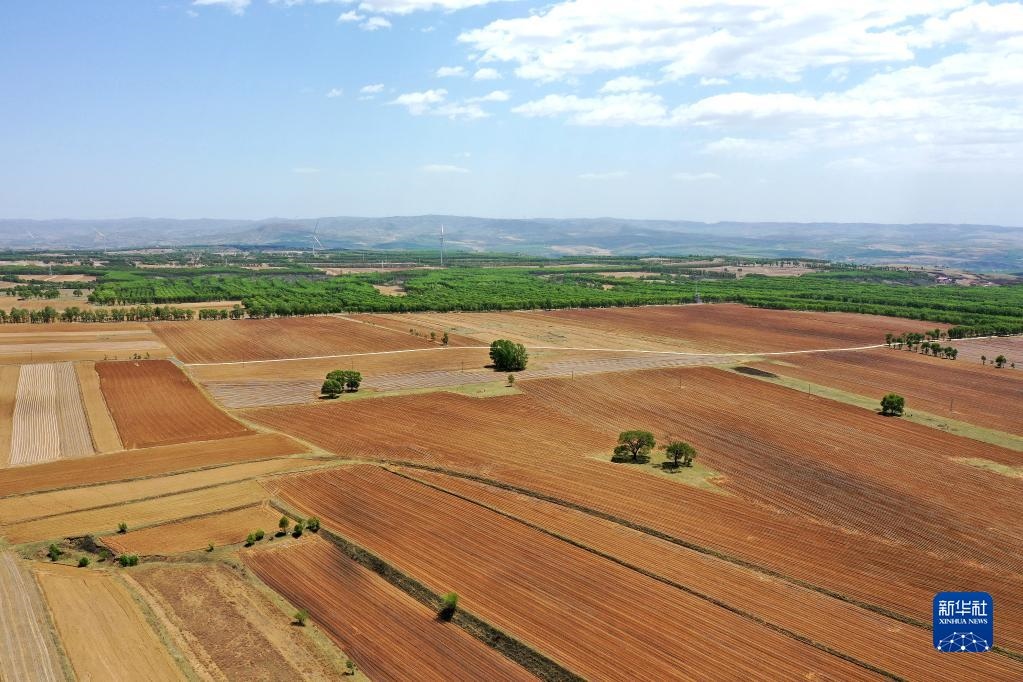 山西省右玉縣新城鎮(zhèn)田園景色(5月19日攝,無(wú)人機(jī)照片)。