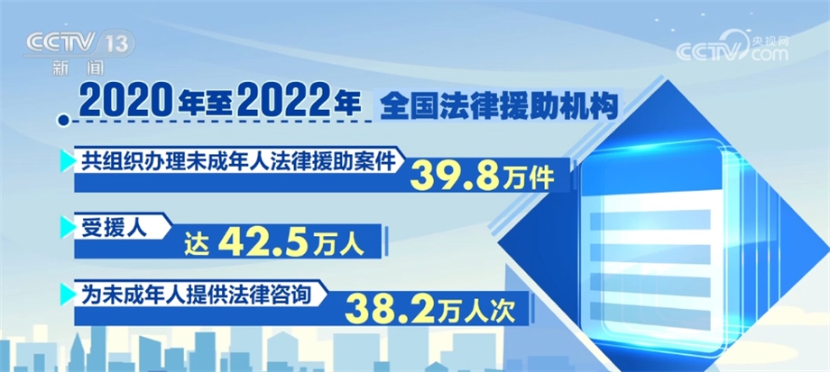 司法部相關(guān)負(fù)責(zé)人在發(fā)布會(huì)上介紹,2020年,司法部印發(fā)《未成年人法律援助服務(wù)指引(試行)》,以專章形式規(guī)范了辦理性侵害未成年人法律援助案件的工作程序和服務(wù)標(biāo)準(zhǔn)。據(jù)統(tǒng)計(jì),2020年至2022年,全國(guó)法律援助機(jī)構(gòu)共組織辦理未成年人法律援助案件39.8萬(wàn)件,受援人達(dá)42.5萬(wàn)人,為未成年人提供法律咨詢38.2萬(wàn)人次。