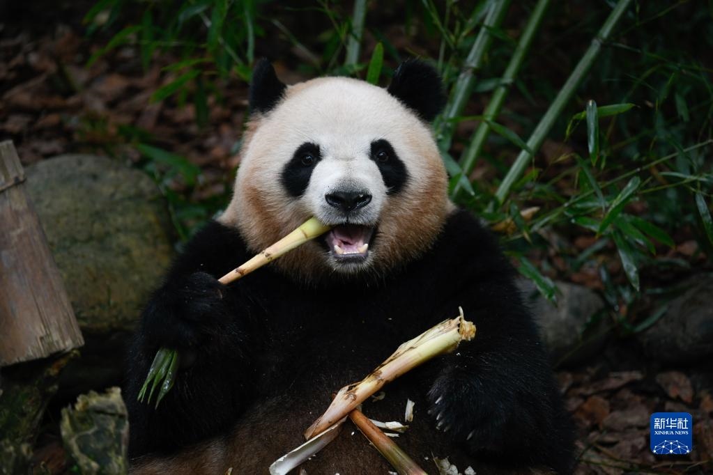 5月29日,在成都大熊貓繁育研究基地都江堰野放繁育研究中心,梅蘭在吃竹筍。當日是大熊貓梅蘭的7歲生日,成都大熊貓繁育研究基地都江堰野放繁育研究中心為它準備了生日大餐。