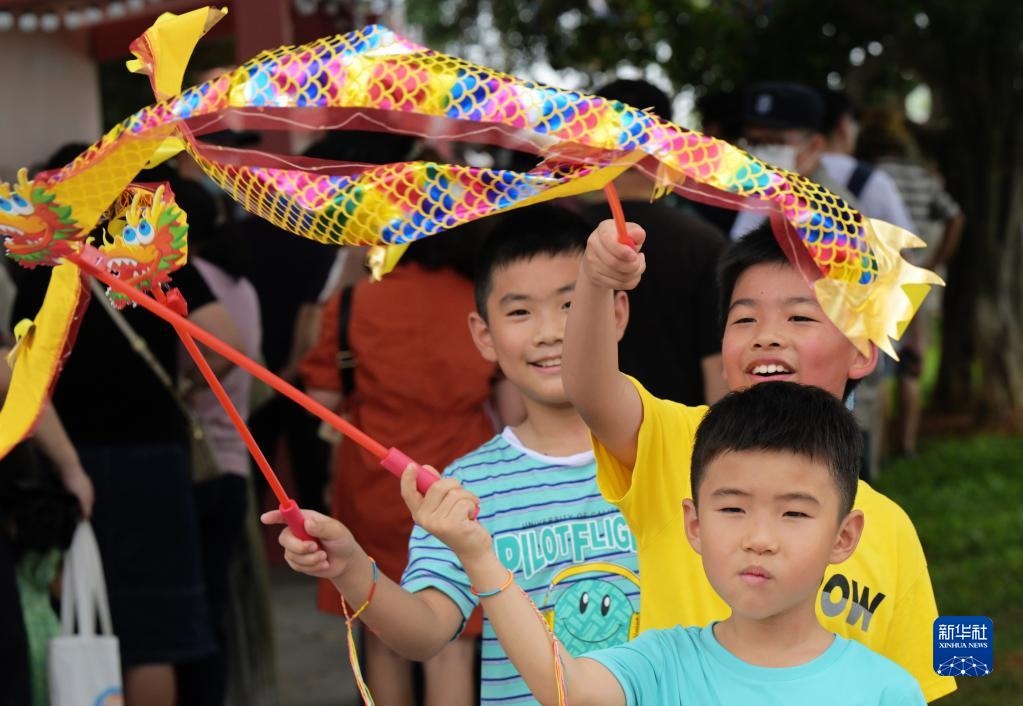 6月3日,廈門小學生在2023海峽兩岸(集美)龍舟文化節(jié)活動現(xiàn)場體驗舞龍。