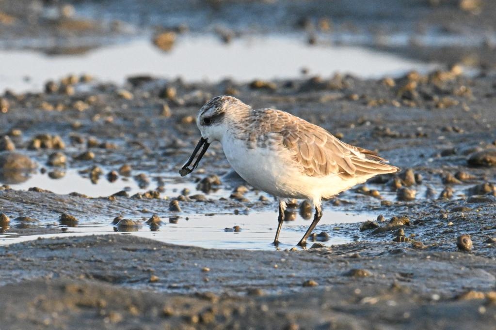 世界珍稀鳥類勺嘴鷸在海南儋州灣濕地覓食。新華社記者 蒲曉旭 攝