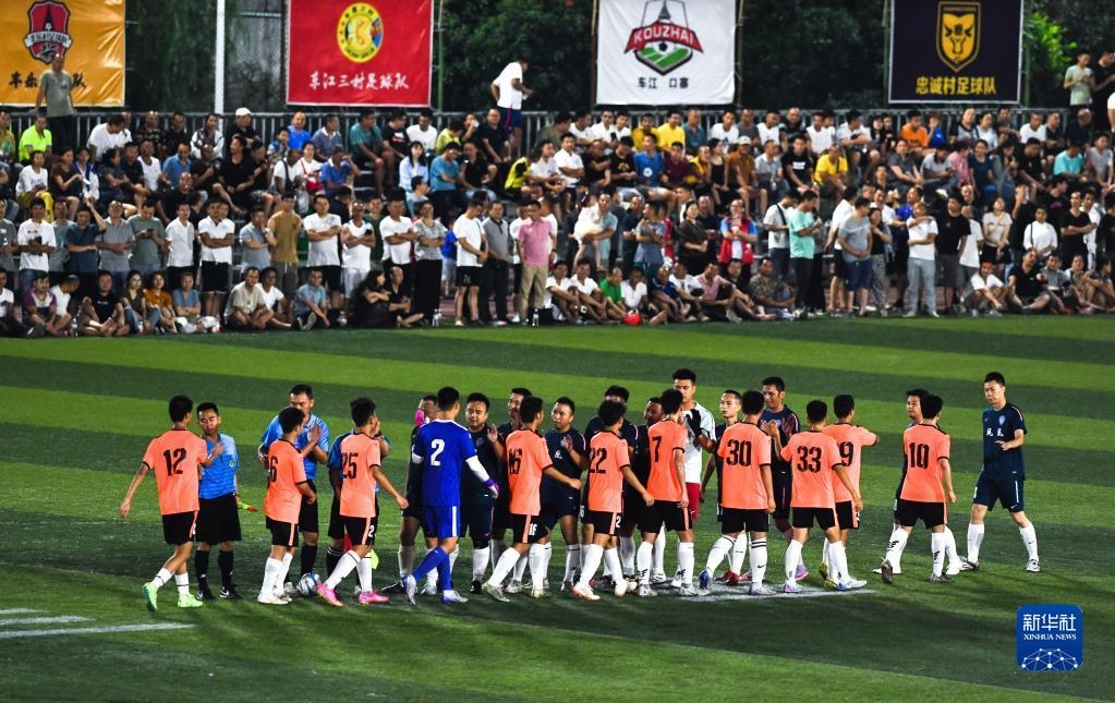 6月9日,鳳凰村足球隊(duì)與新中村足球隊(duì)在“村超”比賽中。