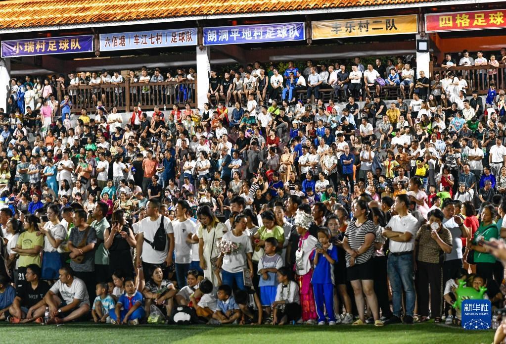 6月9日,人們?cè)谟^看鳳凰村隊(duì)與新中村隊(duì)的“村超”足球比賽。